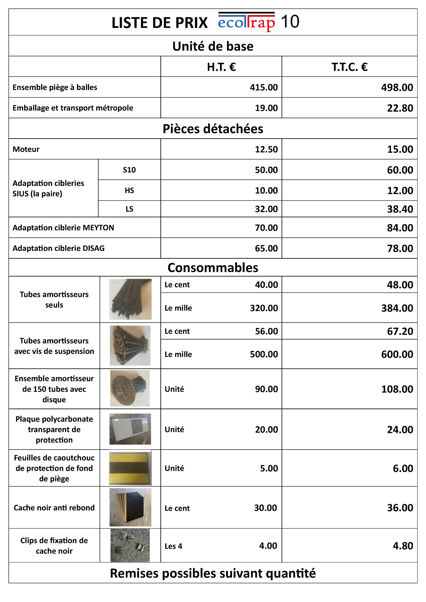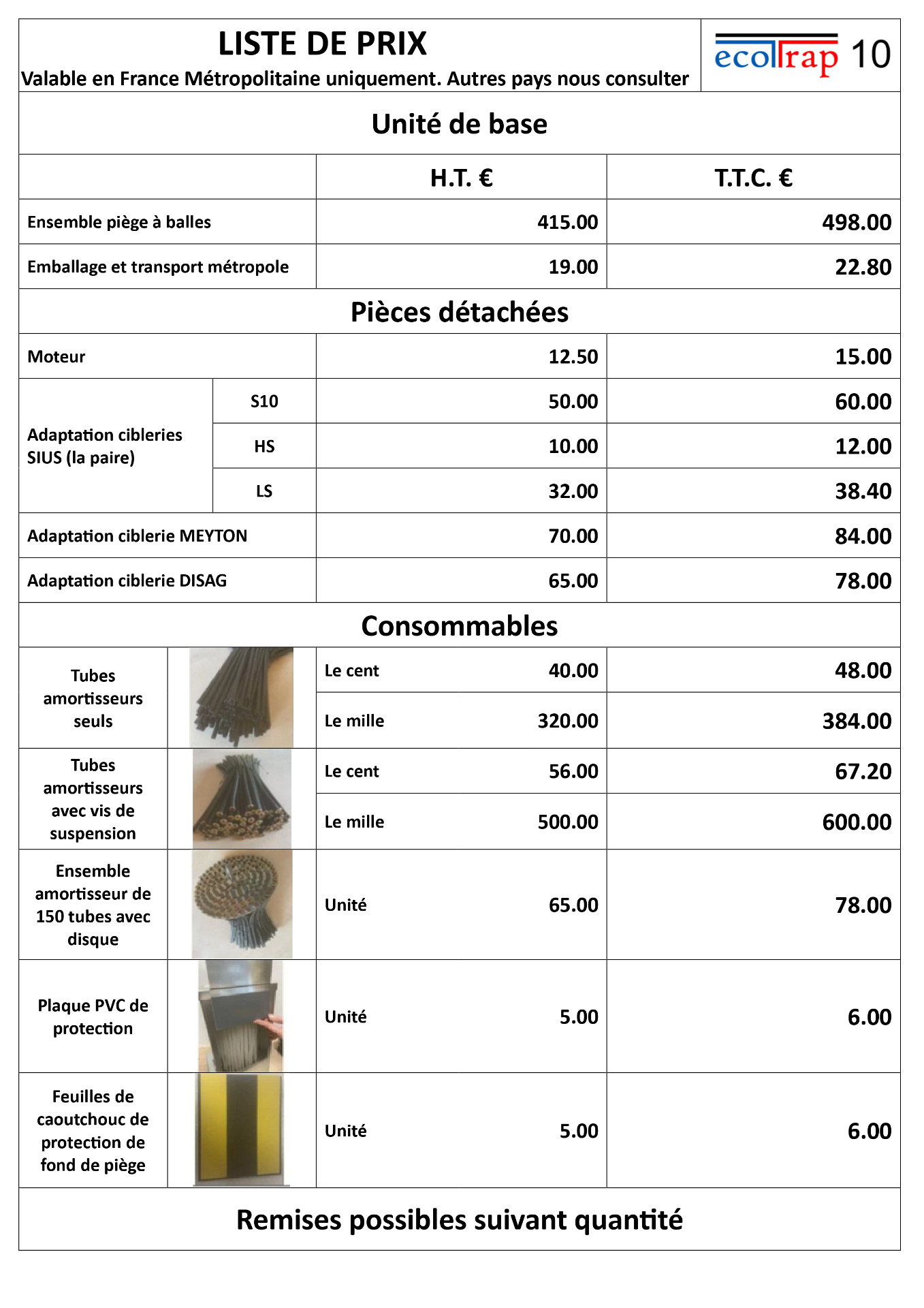 Tarifs des ECOTRAP